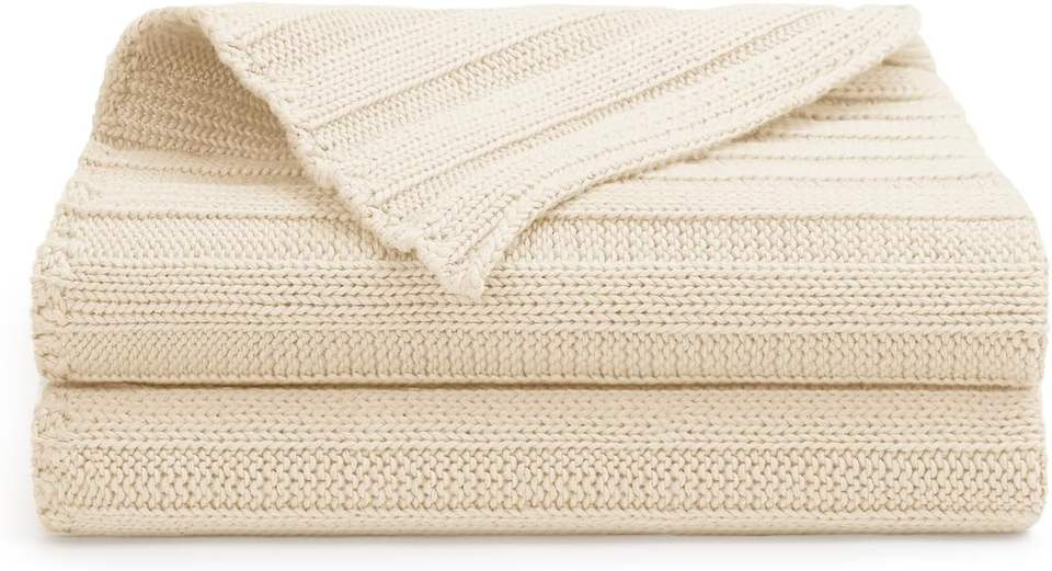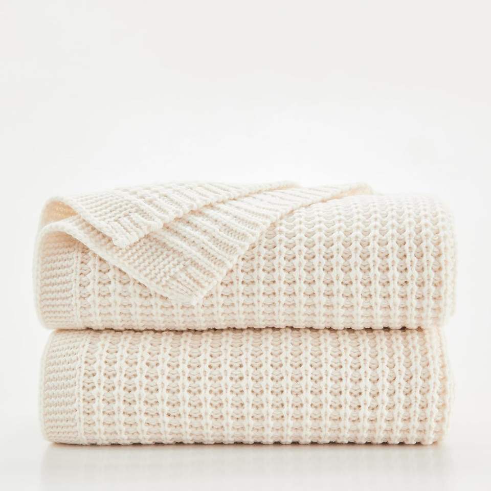 ผ้าห่มนิตติ้งเนื้อหนานุ่ม อุ่นสบาย ผลิตจากผ้าฝ้ายแท้ 100% ตกแต่งพู่ห้อย ลายทอแบบราเชล เหมาะสำหรับฤดูหนาว