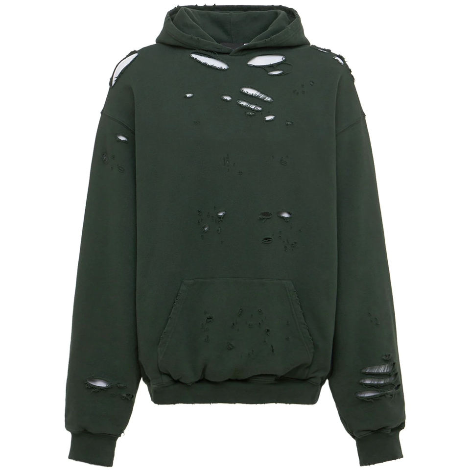 เสื้อฮู้ดดี้ผู้ชายสไตล์สตรีทแวร์ ผ้าหนา ปักลายขาดๆ ดีไซน์สุดฮิต ขายดี