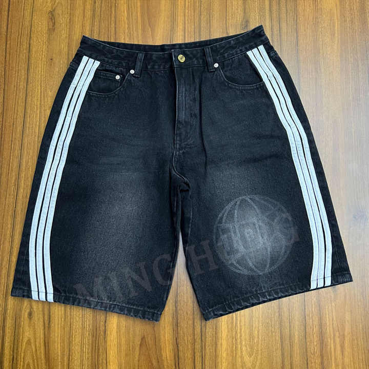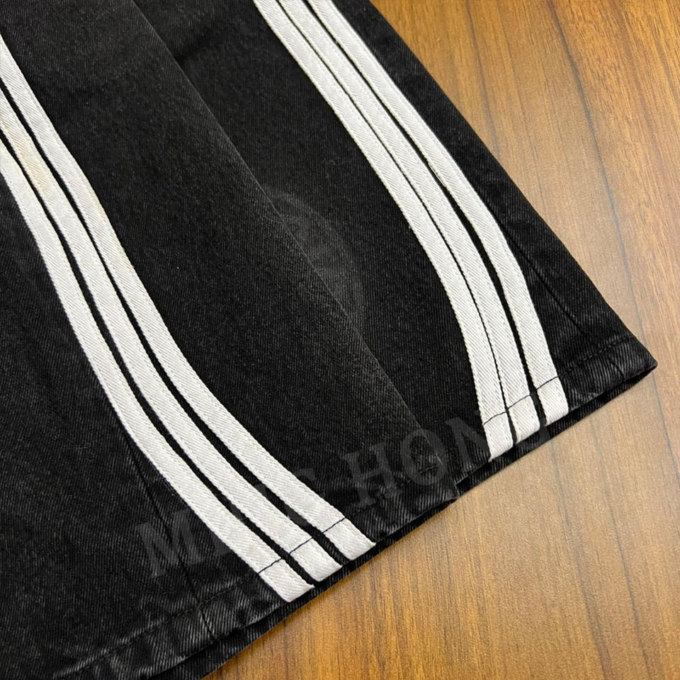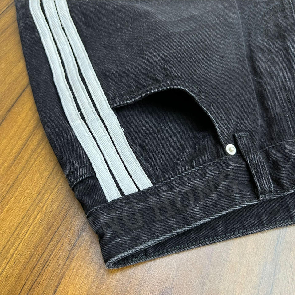 กางเกงยีนส์ขาสั้นทรงแบ็กกี้คุณภาพสูง พิมพ์ลายโลโก้ตามสั่ง แถบข้าง ผลิตโดยผู้ผลิต