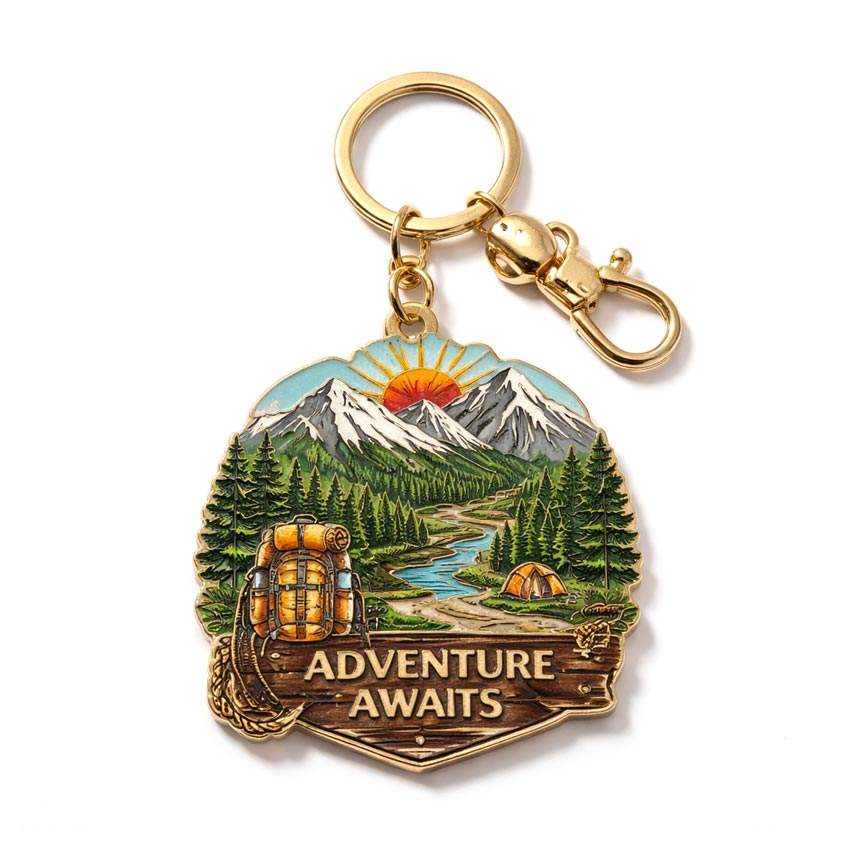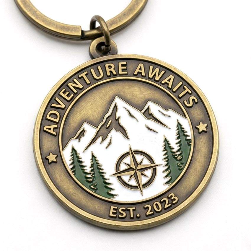 พวงกุญแจโลหะผสมสังกะสีลายการ์ตูนวินเทจแบบสามมิติ พิมพ์ลายสกรีนสีเต็มรูปแบบตามสั่งจากผู้ผลิต สำหรับเป็นของที่ระลึกสำหรับการเดินป่า