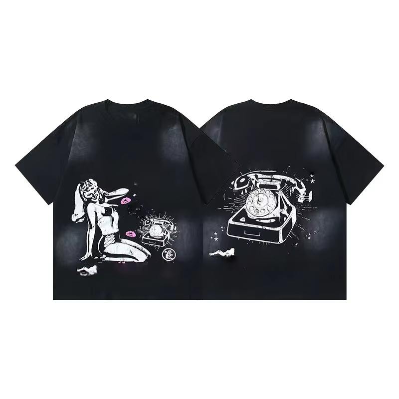เสื้อยืดผู้ชายลายกราฟิกสั่งทำพิเศษ สไตล์สตรีทแวร์ วินเทจ ล้างสีแบบแอซิด ทำลายแบบดิสเทรส คุณภาพสูง พิมพ์ลายด้วยเทคนิค DTG ประดับด้วยคริสตัล
