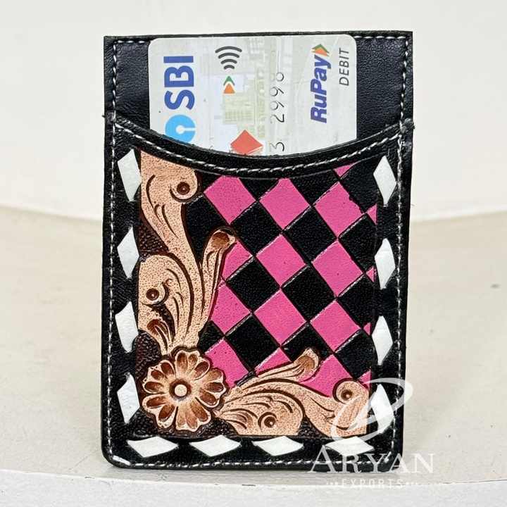 ที่ใส่บัตรเครดิตหนังลายตารางหมากรุกทำมือ