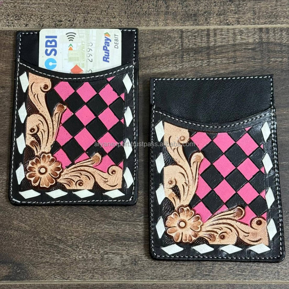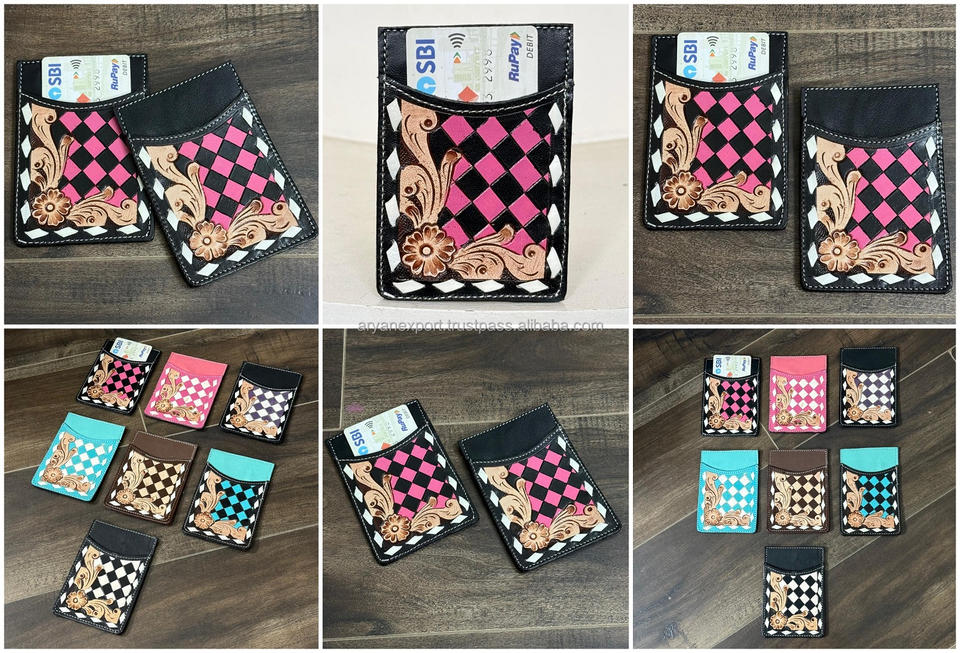 ซองใส่บัตรหนังแท้ทำมือลายตารางหมากรุกคุณภาพสูง ทนทาน สำหรับใช้ในชีวิตประจำวัน ผลิตตามสั่งจากโรงงาน