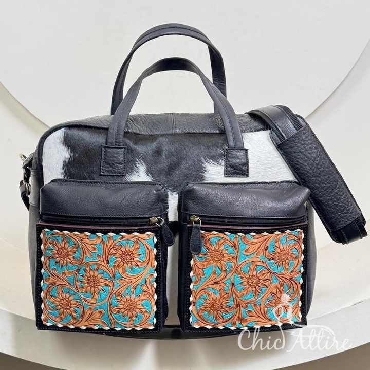 กระเป๋าคุณแม่ทำจากหนังวัวแท้มีหลายช่องสำหรับจัดระเบียบกระเป๋าถือสะพายข้าง