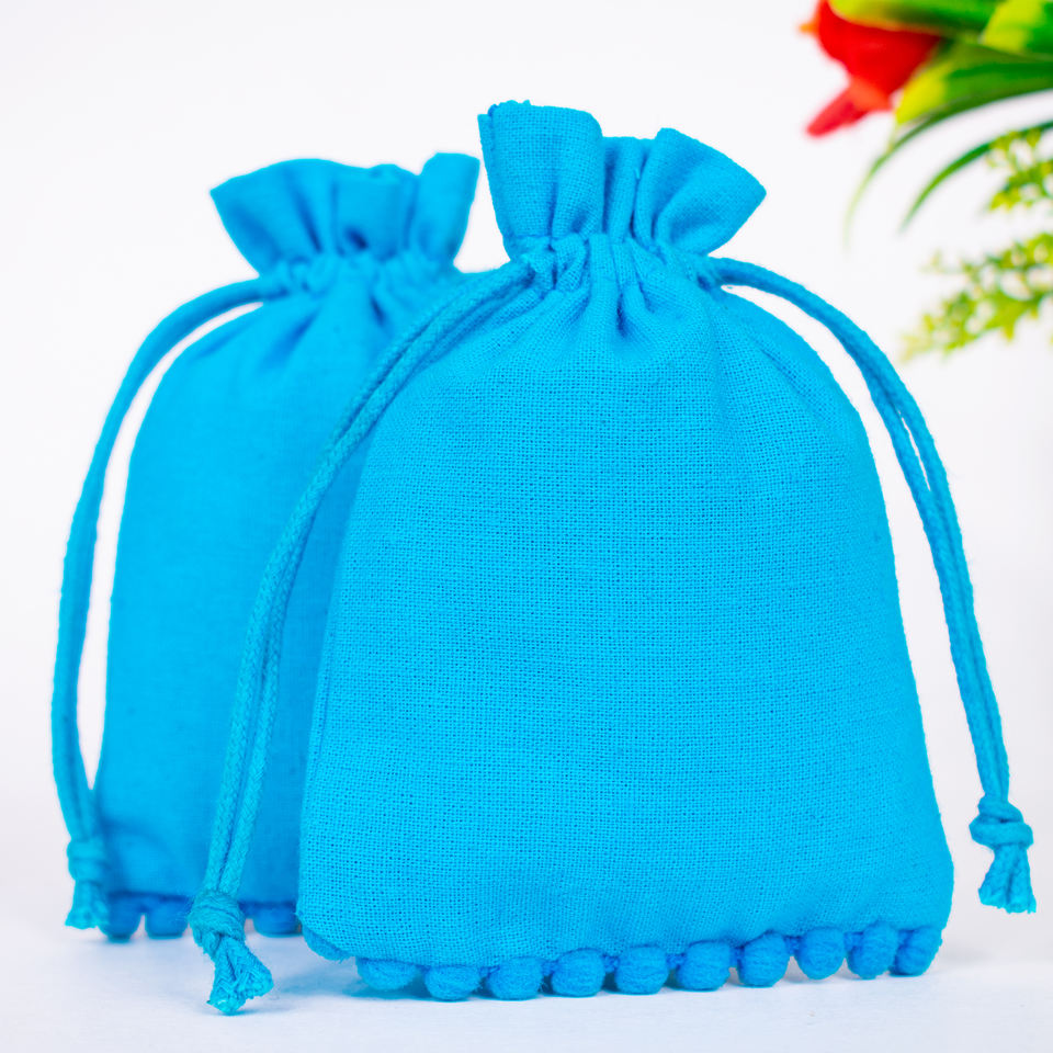 Manufacturer Custom Logo Indian Handmade Turquoise Voile Gift Favor Bag Drawstring Cotton Jewelry Storage Pouch Wholesale