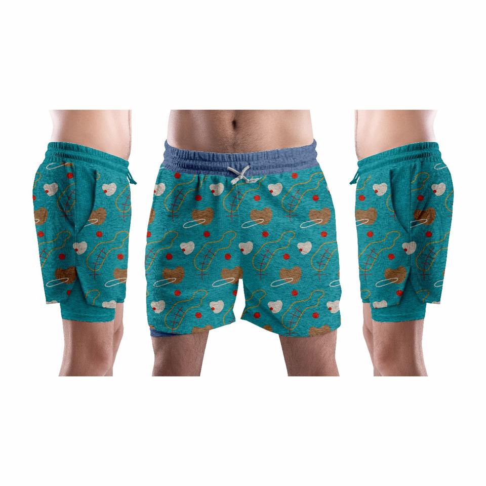 กางเกงขาสั้นสำหรับวิ่งออกกำลังกายแบบ2-in-1ของผู้ชายกางเกงขาสั้นระบายอากาศได้ดีพิมพ์ซับลิเมชันสีพื้นโลโก้ได้ตามต้องการ
