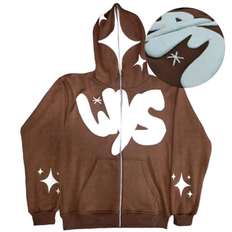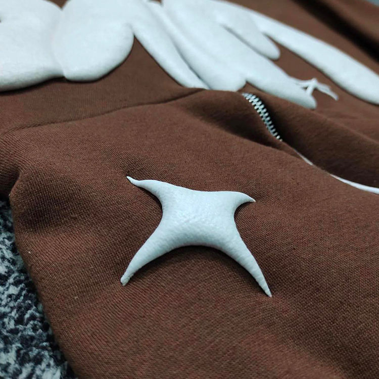 คีย์เวิร์ด:เสื้อมีฮู้ดพิมพ์ลายพัฟซิปขึ้นเต็มหน้า