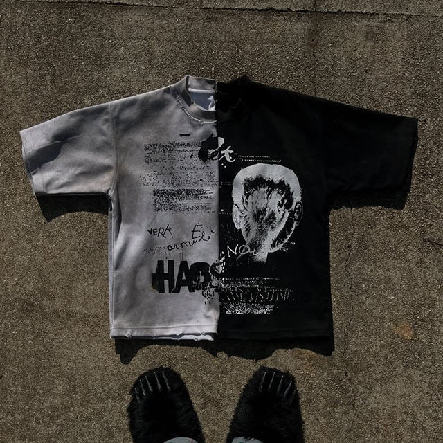 เสื้อยืดครอปผู้ชายสั่งทำพิเศษจากโรงงาน ทรงหลวมไหล่ตก ผ้าเทอร์รี่ 350 กรัม ผ้าฝ้าย 100% ทรงโอเวอร์ไซส์ สไตล์ไฮสตรีท ระบายอากาศได้ดี แห้งเร็ว