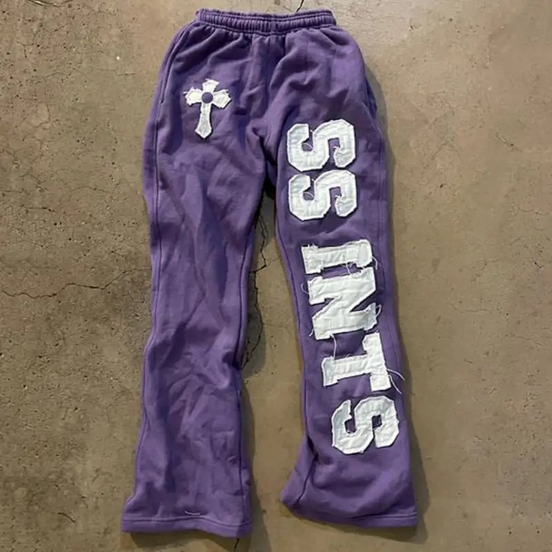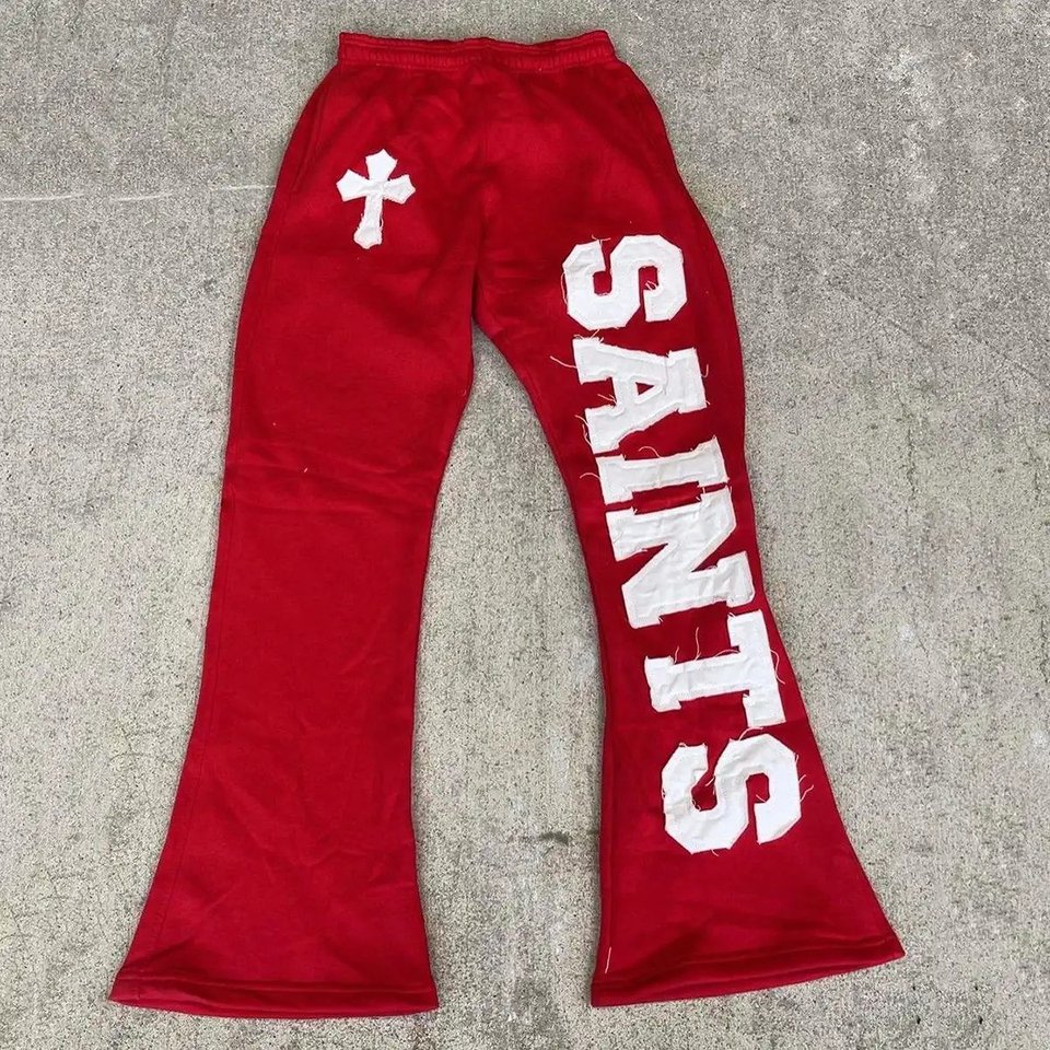 กางเกงวอร์มทรงขาบานผู้ชายสั่งทำพิเศษ ผ้าฟลีซคอตตอนหนานุ่ม 400 กรัม ระบายอากาศได้ดี ทรงเข้ารูป ไซส์ใหญ่ แต่งลายปักแบบดิสเทรส