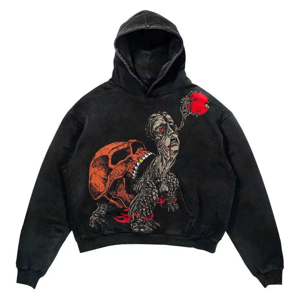 เสื้อมีฮู้ดโอเวอร์ไซส์ของผู้ชายผ้าคอตตอนโอเวอร์ไซส์ออกแบบปักลายมีซิปสำหรับฤดูหนาวผลิตตามสั่ง