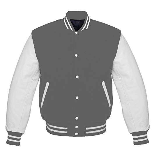 แจ็คเก็ตวาร์ซิตี้ผ้าผสมขนสัตว์และโพลีเอสเตอร์สำหรับผู้ชาย ผลิตตามแบบที่ลูกค้ากำหนด พร้อมปักโลโก้ด้วยไหมเชนิลล์ เหมาะสำหรับใส่ในฤดูหนาว