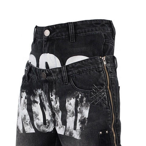 กางเกงผ้ายีนส์เอวสูงทรงหลวมแนววินเทจผ้าฝ้าย100% คริสตัลเทียมพิมพ์ลายได้ตามต้องการ