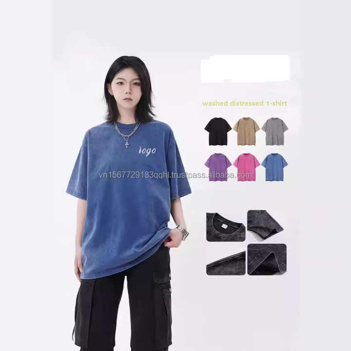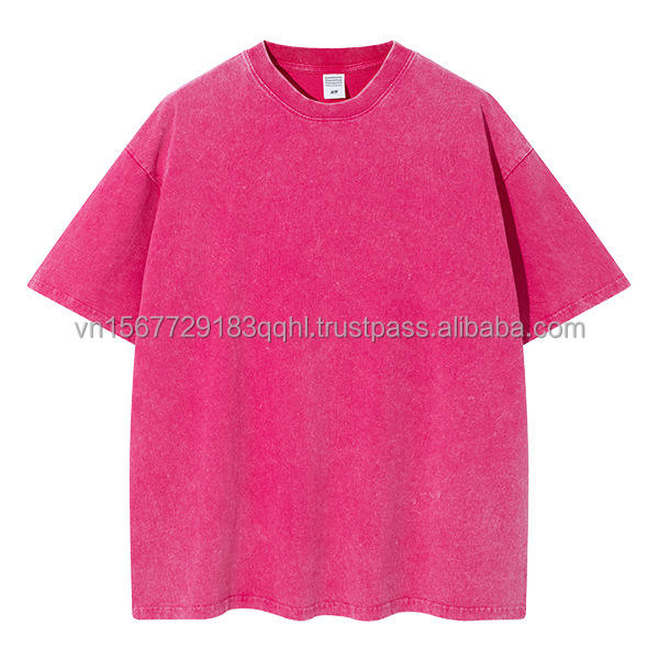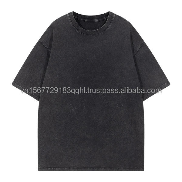 เสื้อยืดคอตตอนคุณภาพสูงทรงปกติแบบวินเทจ ย้อมสีเอซิด น้ำหนักมาก ผลิตตามสั่ง พิมพ์ลายได้ตามต้องการ แขนสั้น ใส่ได้ทั้งชายและหญิง