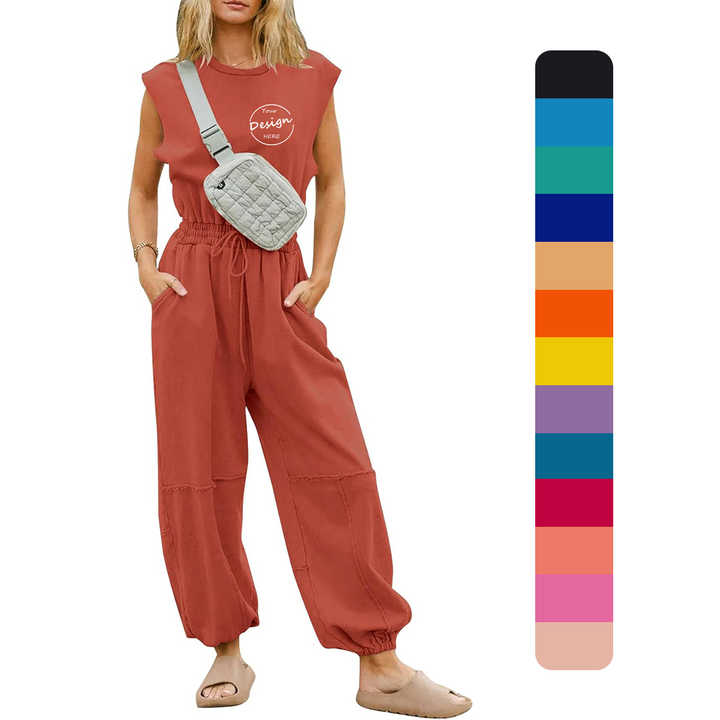 จั๊มสูทเลานจ์แบบมีเชือกผูกเอวสูงสำหรับผู้หญิงบอดี้สูทพิมพ์ลายแบบกำหนดเอง