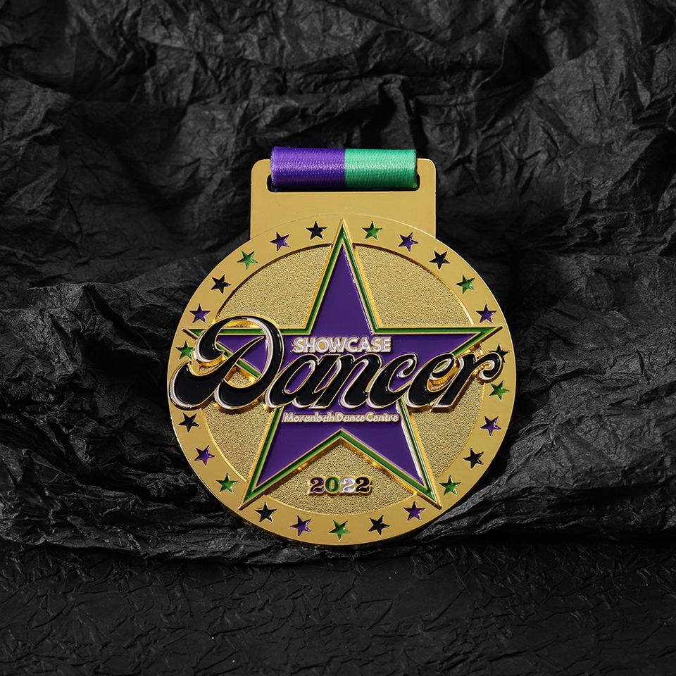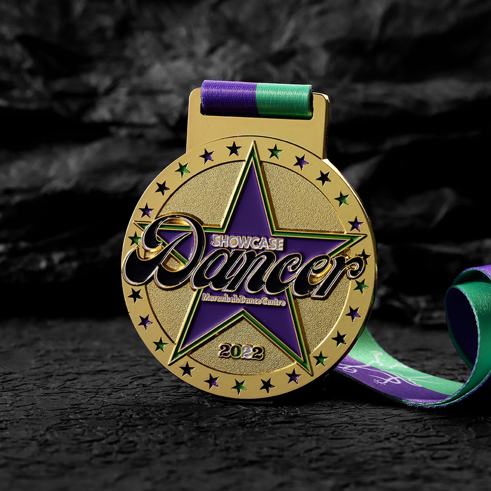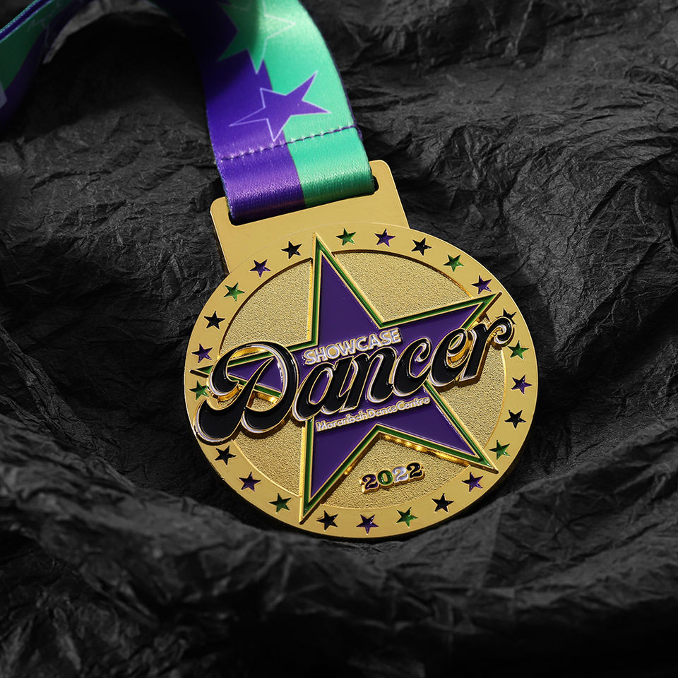 Manufacturer Custom Sky Star Zinc Alloy Soft Enamel Double Dance Competition Gold Medal