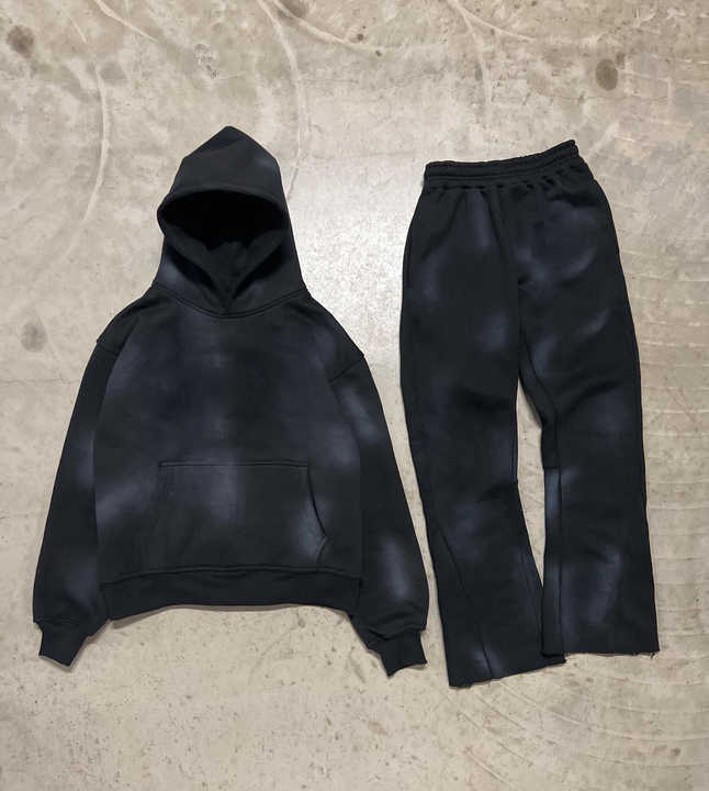 ผู้ผลิตที่กําหนดเองStreetwearกรดล้างFlareกางเกงTracksuitsสําหรับMan Stone Vintage Unisexเหงื่อชุด 500GSMผ้าฝ้ายชุด