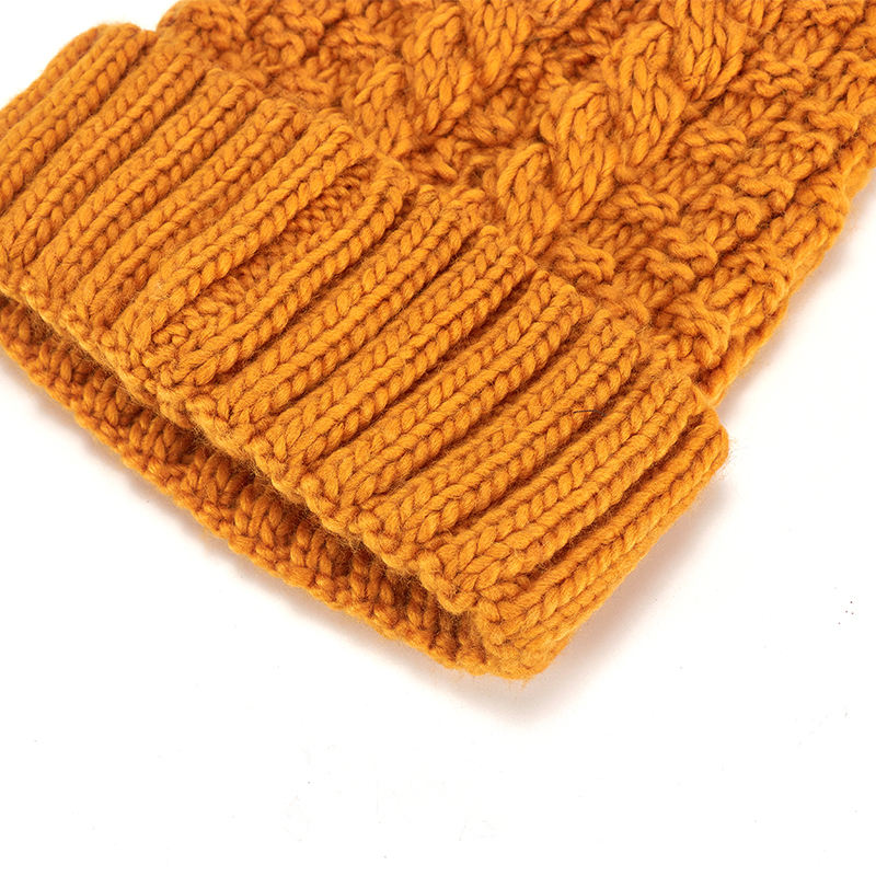 หมวกไหมพรมถักสีเหลืองแฟชั่นอบอุ่นสำหรับฤดูหนาวหมวกบีนนี่ปักลาย3D สไตล์ท่องเที่ยว