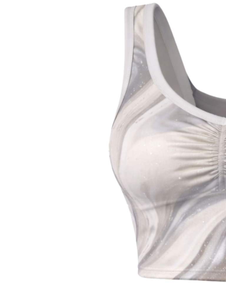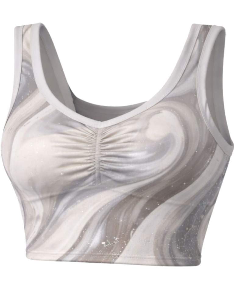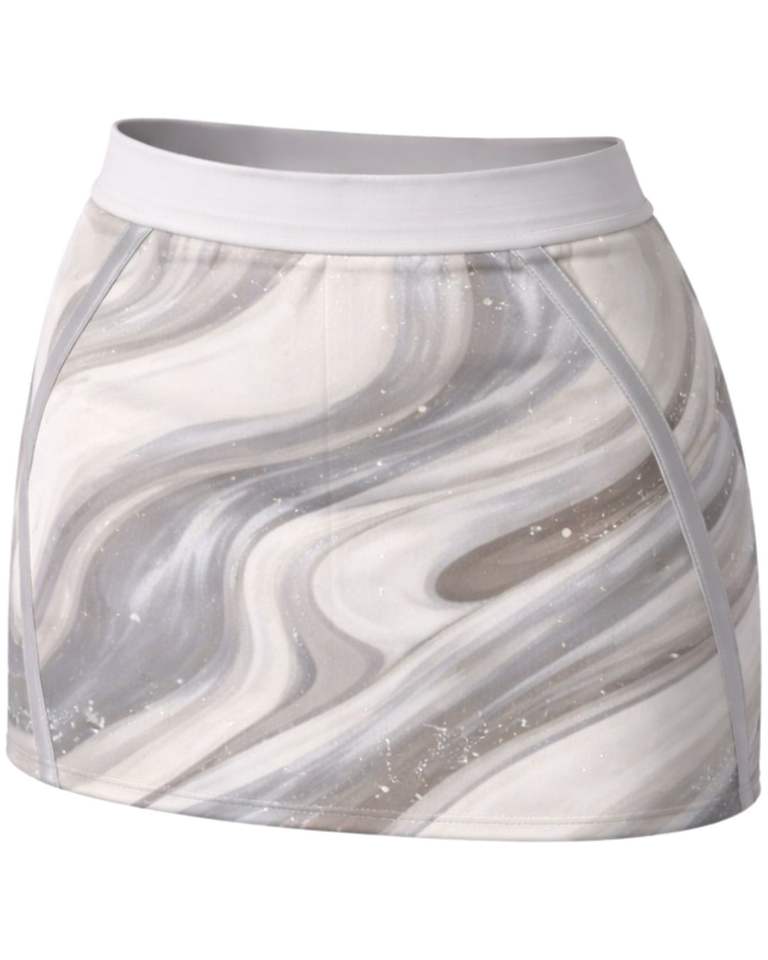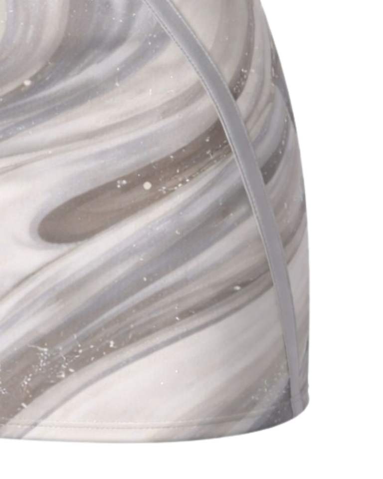 ชุดเซ็ตกระโปรงสองชิ้นลายหินอ่อนสีเทาสำหรับผู้หญิง ผลิตตามสั่ง เสื้อครอปแขนกุด กระโปรงมินิเอวสูง ผ้าสเตรช ชุดฤดูร้อน