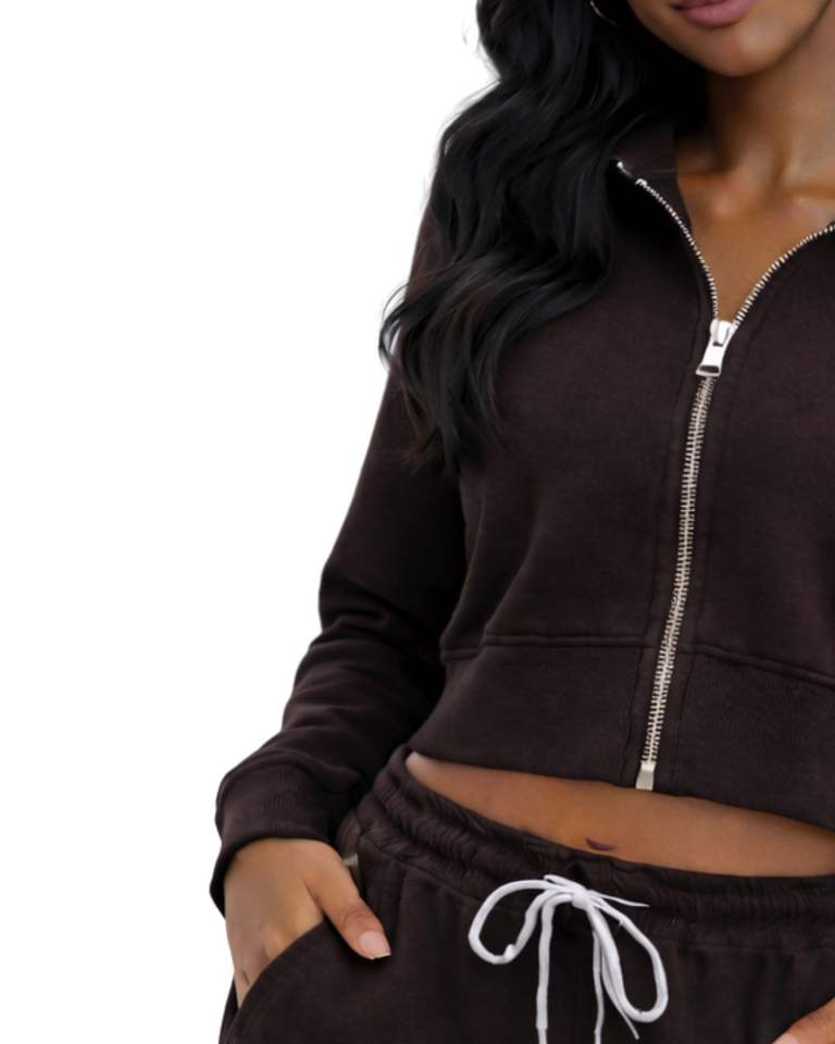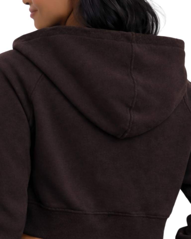 เสื้อฮู้ดครอปซิปสำหรับผู้หญิง สีน้ำตาล แขนยาว สไตล์ลำลอง สตรีทแวร์ ออกกำลังกาย ฟิตเนส ผลิตตามสั่งจากโรงงาน