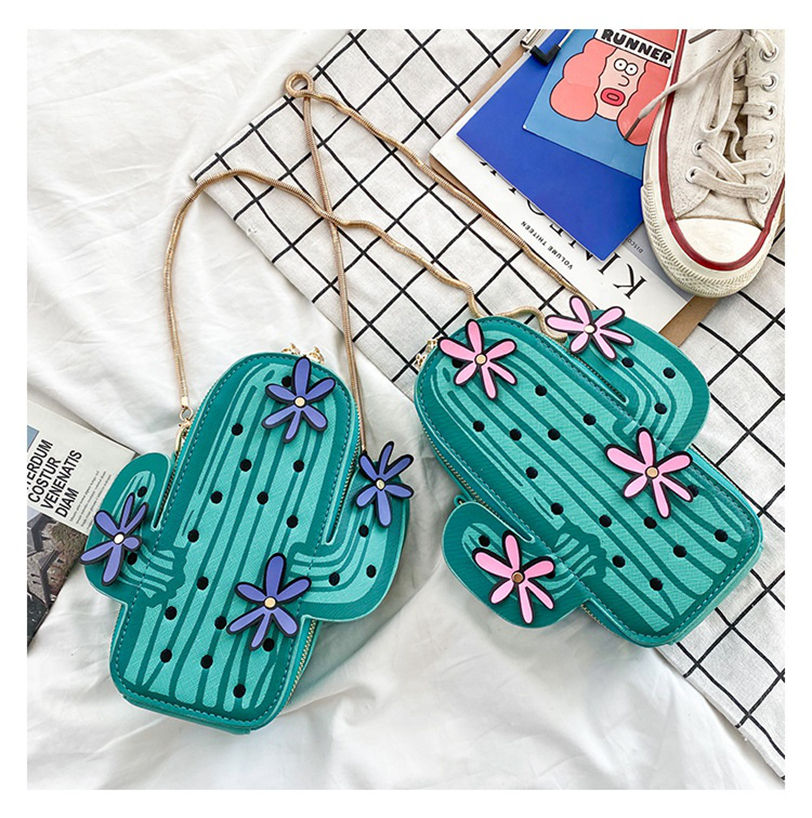 กระเป๋าแฟชั่นสำหรับผู้หญิงซับในผ้าฝ้ายลายการ์ตูนรูปกระบองเพชรพิมพ์ลายปิดด้วยซิป