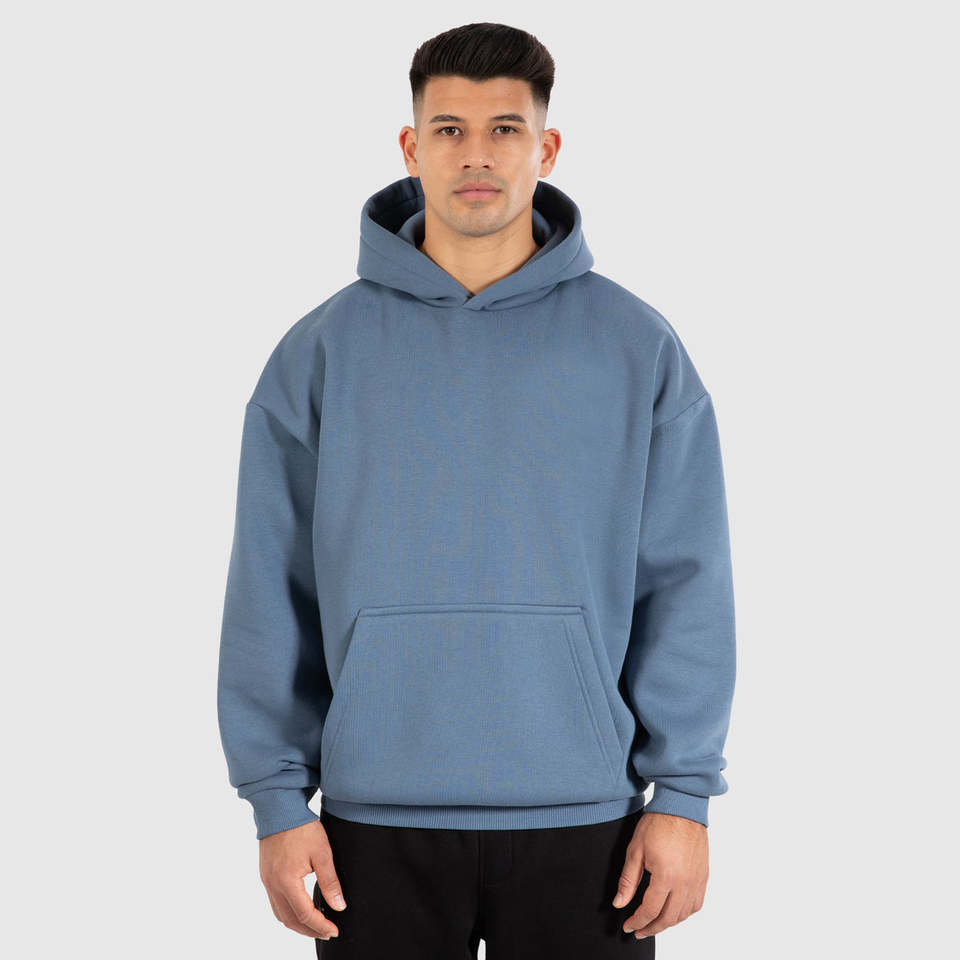 เสื้อฮู้ดดี้ผู้ชายผ้าฝ้ายเฟรนช์เทอร์รี่ 100% ทรงโอเวอร์ไซส์ สไตล์เรียบง่าย น้ำหนักมาก รับสกรีนโลโก้ตามแบบ