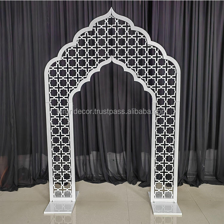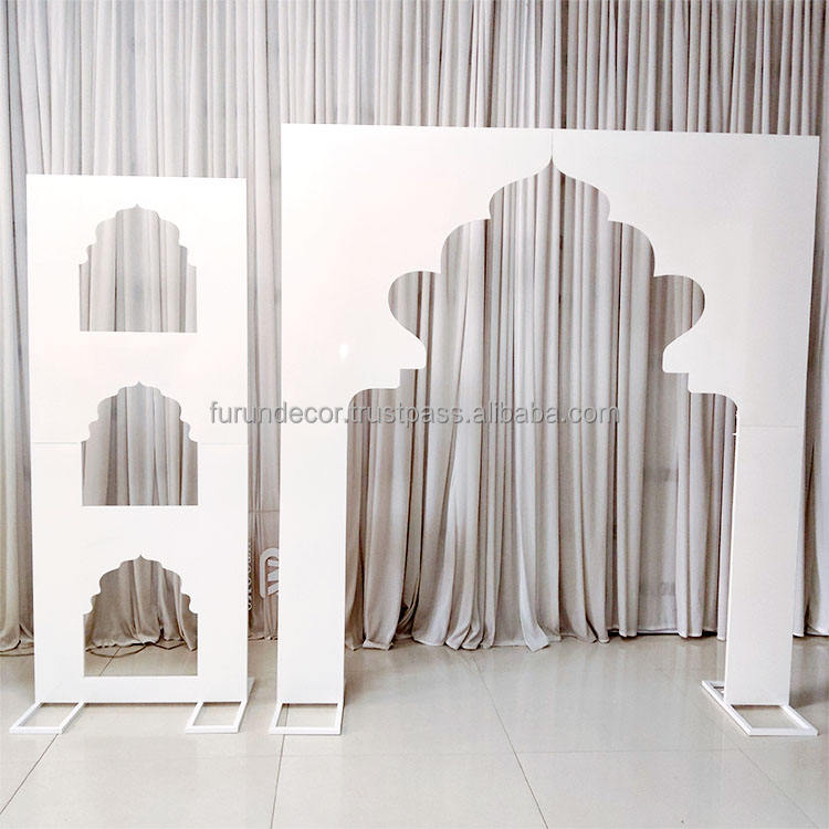 การตกแต่งพื้นหลังซุ้มโลหะสามมิติแบบ2D กำหนดเองสำหรับการตกแต่งพื้นหลังงานอีเว้นท์งานแต่งงาน