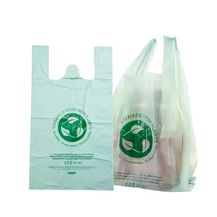 ถุงใส่เสื้อยืดรีไซเคิลได้พิมพ์ลายกราเวียร์แบบกำหนดเองปิดผนึกด้วยความร้อนสำหรับร้านอาหารและซูเปอร์มาร์เก็ต