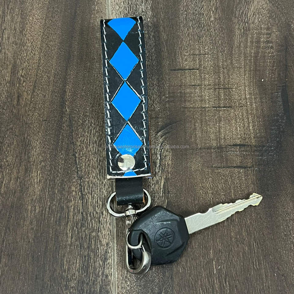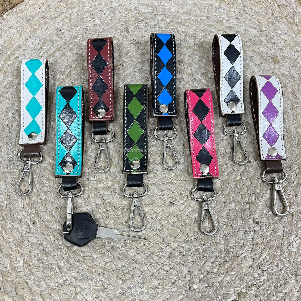 พวงกุญแจหนังลายตารางหมากรุกทำมือ