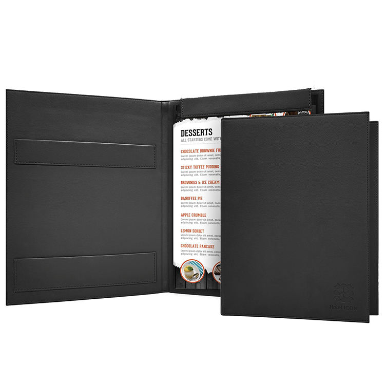 ปกเมนูหนังร้านอาหารแบบกำหนดเองจากผู้ผลิต พร้อมสมุดเมนูแม่เหล็กขนาด A4 และที่ใส่เมนูหนัง