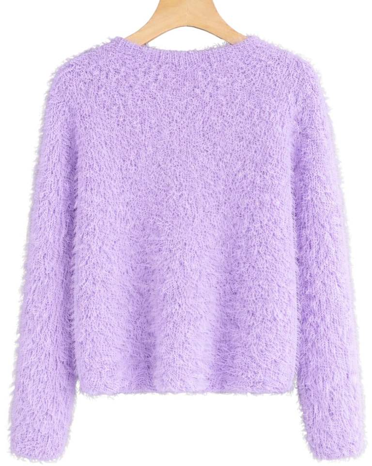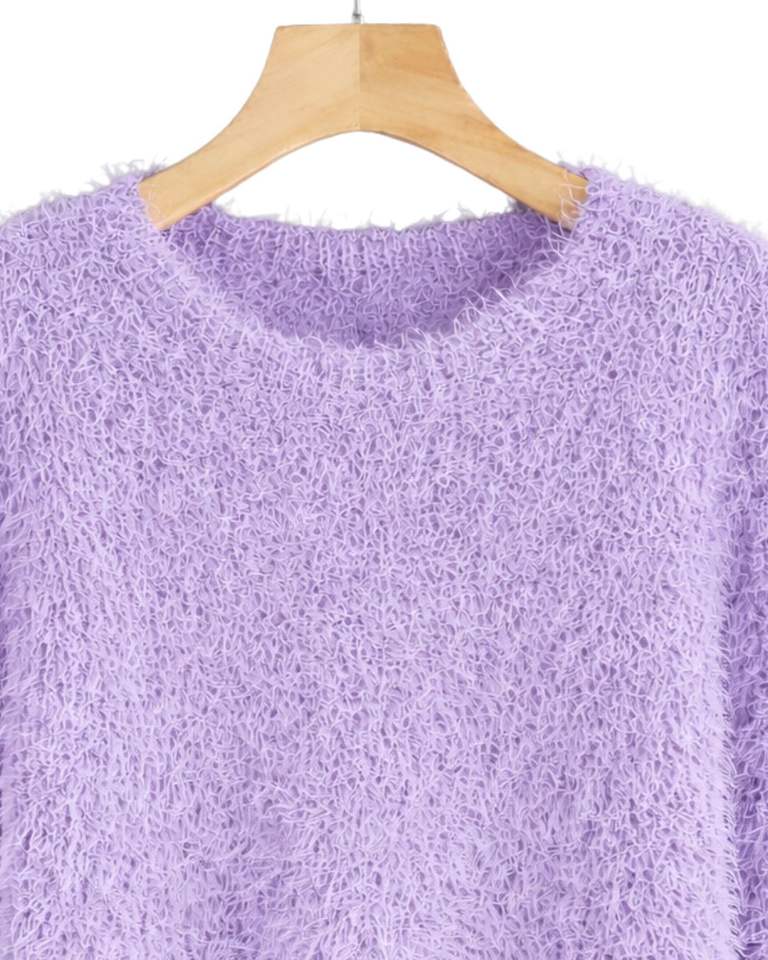 Manufacturer Customized Womens Lavender Fuzzy Knit Sweater Long Sleeve Soft Warm Winter Pullover Cozy Textured Casual Fashion