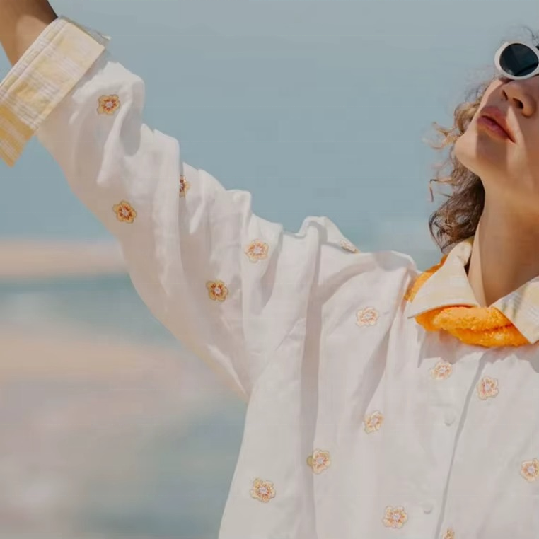 เสื้อเชิ้ตฮาวายแขนยาวไซส์ใหญ่สำหรับผู้หญิง ออกแบบโดยผู้ผลิต ปักลาย ทรงหลวม ตัดเย็บตามสั่ง ผ้าไมโครไฟเบอร์ ยืดหยุ่นได้ดี