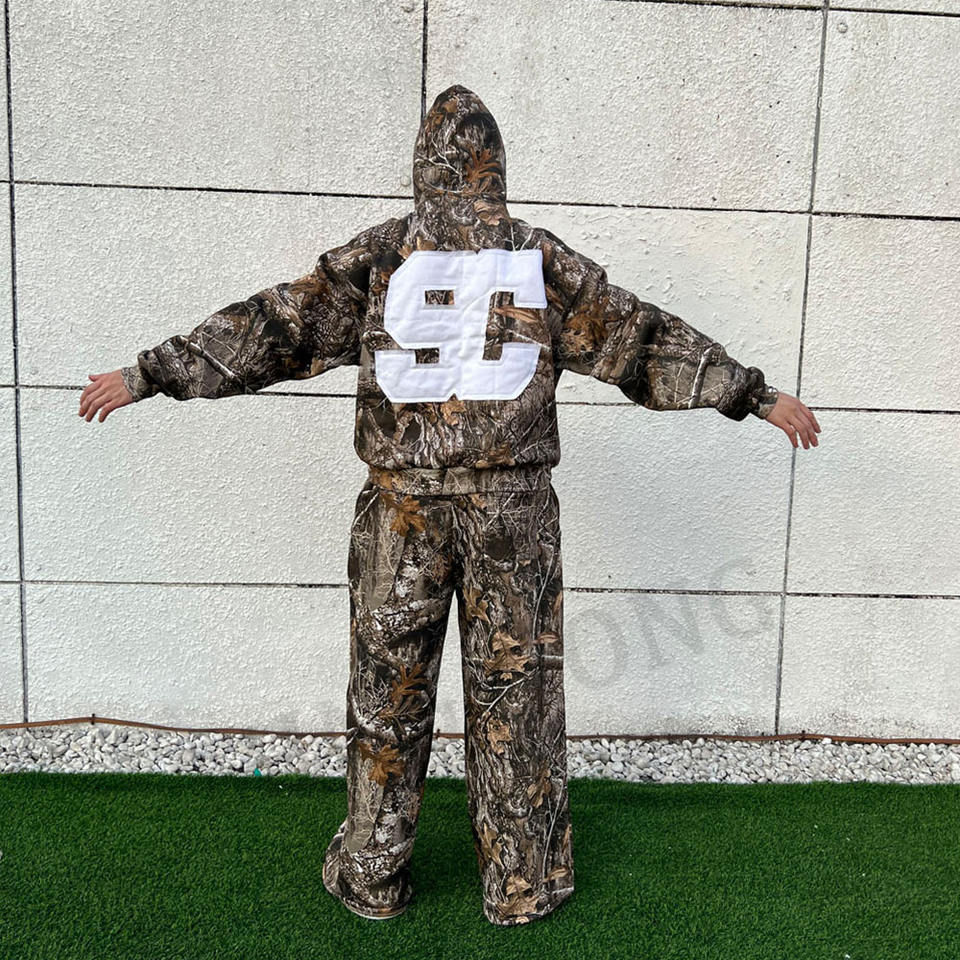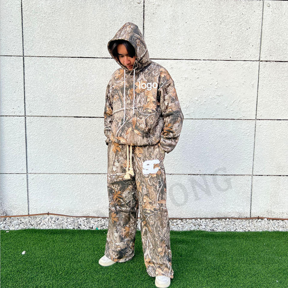 ชุดวอร์มมีฮู้ดสำหรับผู้ชายสติกเกอร์พิมพ์ลายพรางดิจิทัลสไตล์สตรีทปักลาย