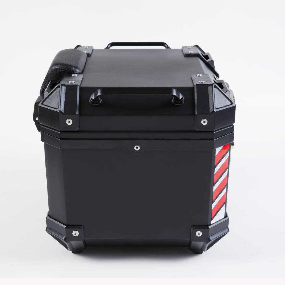 กล่องเก็บของมอเตอร์ไซค์ทรงสี่เหลี่ยม 35 ลิตร ผลิตจากพลาสติกผสมโลหะ พร้อมพนักพิงและซับใน จากโรงงานผู้ผลิตโดยตรง