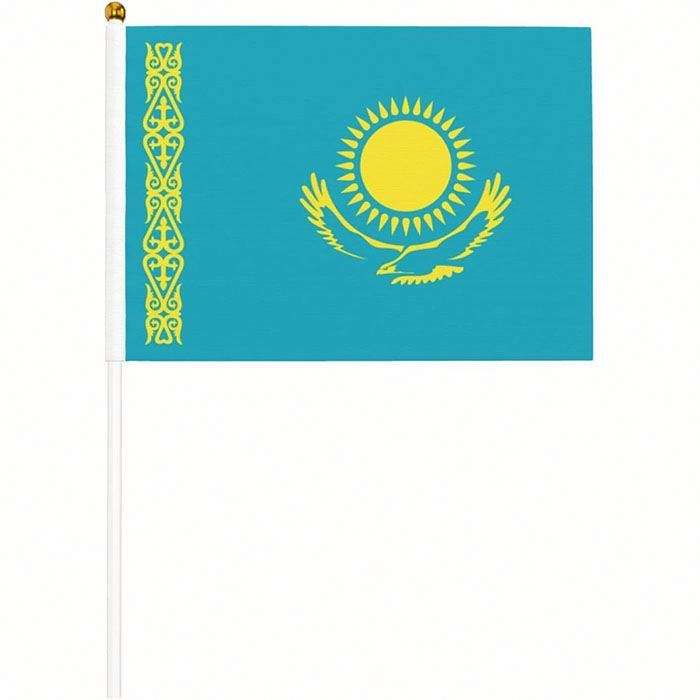 ธงคาซัคสถานขนาดเล็ก 5.5x8.2 นิ้ว คุณภาพสูงจากโรงงานผู้ผลิตโดยตรง ทอมือทุกขนาด เหมาะสำหรับตกแต่งในงานแคมเปญ