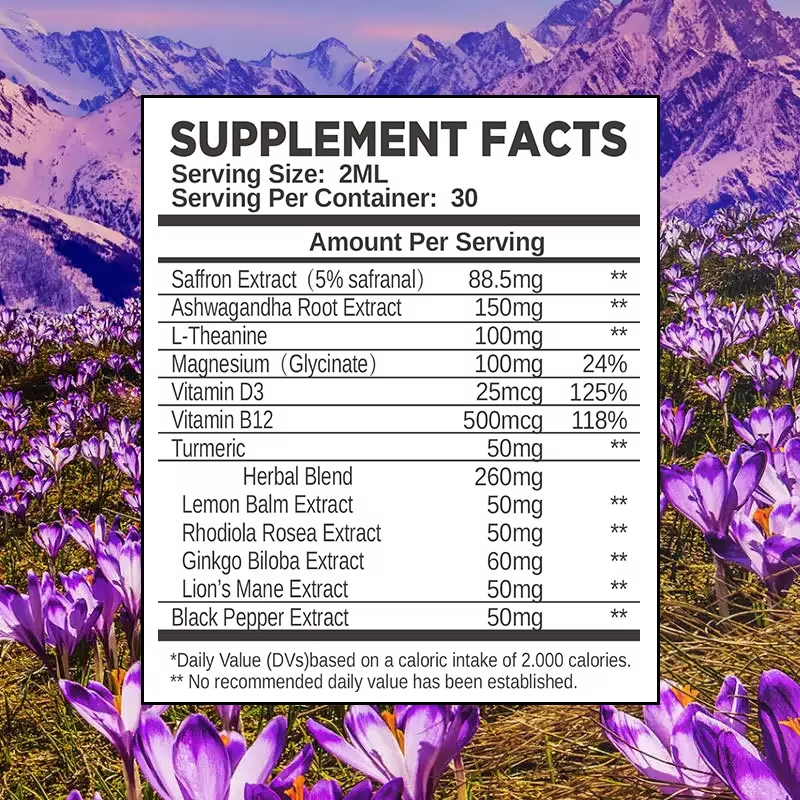 ส่วนผสมหลัก:สารสกัดจากหญ้าฝรั่น, สารสกัดจากรากอัชวกันดา, แอล-ธีอะนีน, วิตามินดี 3, วิตามินบี 12, ขมิ้น, สารสกัดพริกไทยดำ