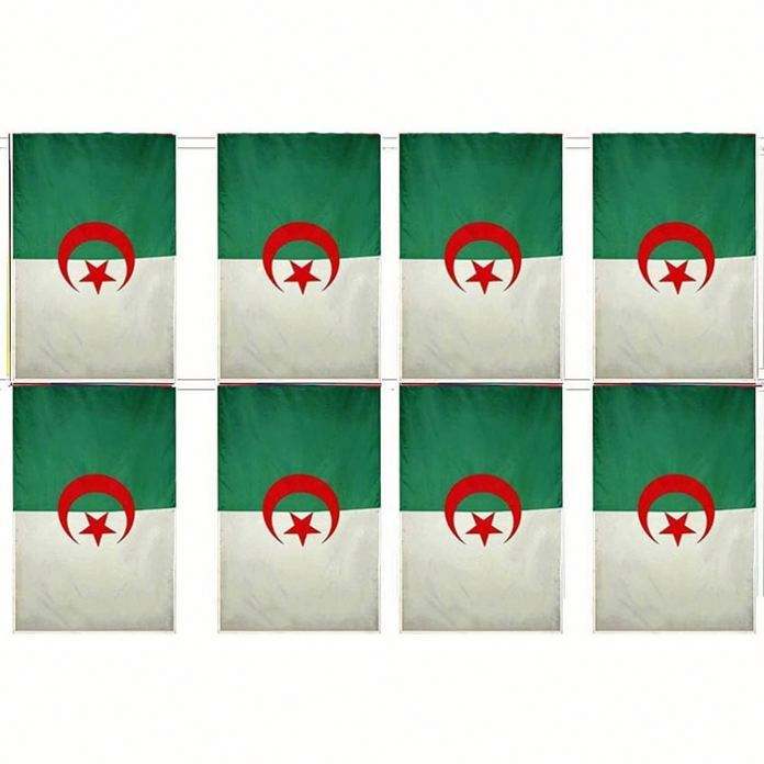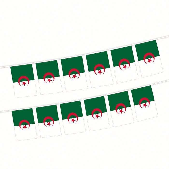 ธงโพลีเอสเตอร์จากผู้ผลิตโดยตรง ธงแอลจีเรียแบบเส้นพร้อมสายแขวน คุณภาพพรีเมียม ทนทานต่อการซีดจาง เหมาะสำหรับงานอีเว้นท์