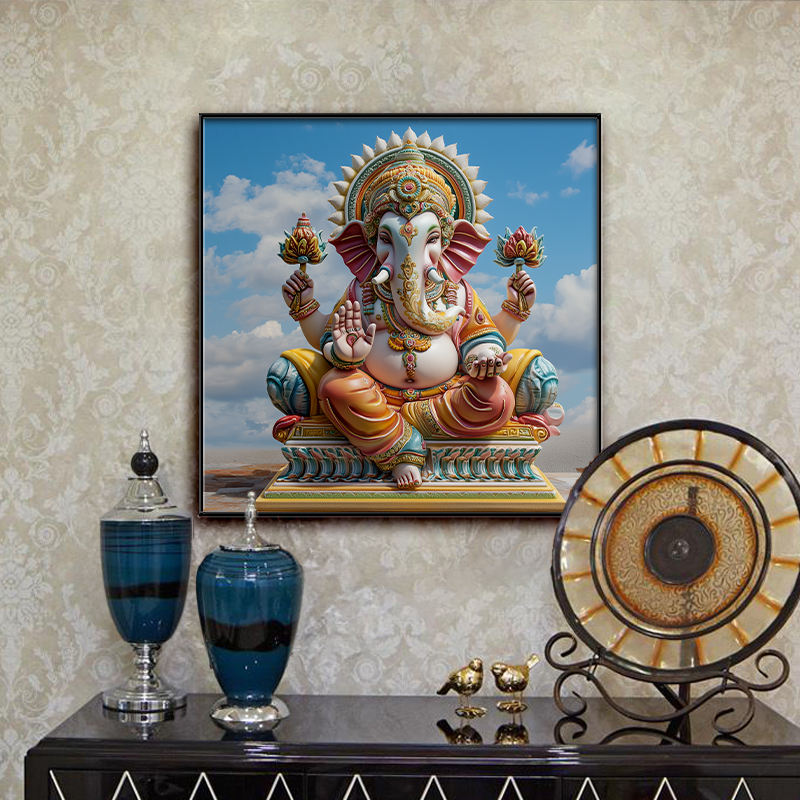 ภาพพระพิฆเนศแบบดั้งเดิมของชาวอินเดียภาพพิมพ์ดิจิทัลลายหัวช้างพระพิฆเนศ