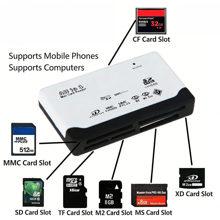 SD TF Card Reader, XD, CF, MS, M2, SDHC, MMC, Flash TF Card
