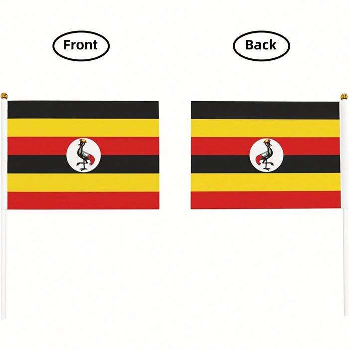 ธงมินิแบบพกพาขนาด 5.5x8.2 นิ้ว พิมพ์ลายดิจิตอลบนผ้าโพลีเอสเตอร์ ผลิตในยูกันดา พร้อมเสา PVC จัดจำหน่ายโดยตรงจากผู้ผลิต