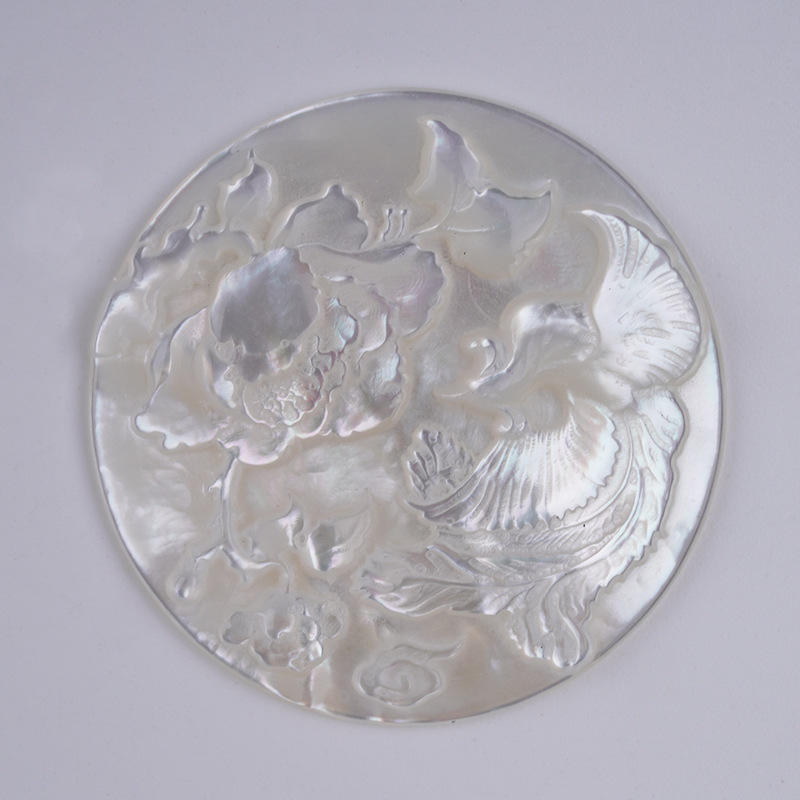 ส่วนประกอบเครื่องประดับหลากหลายชนิด ทำจากเปลือกหอยมุกขาวธรรมชาติ แกะสลักลายฉลุสีเหลือง ได้รับการรับรองโดยผู้ผลิตโดยตรง