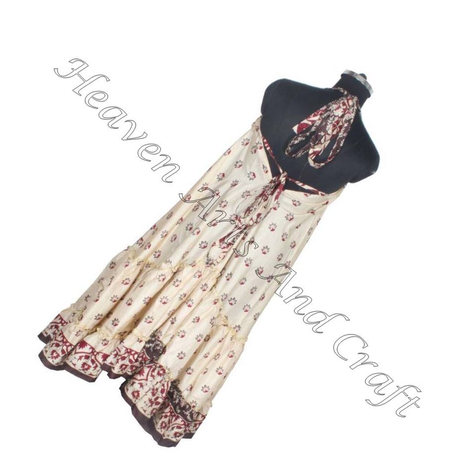 ชุดเดรสผ้าไหมอินเดียวินเทจสำหรับสตรีชุดราตรีแขนกุด SD012