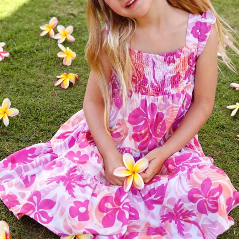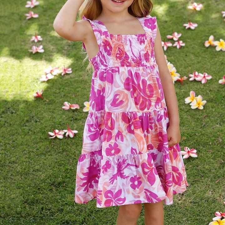 โรงงานผู้ผลิตชุดเดรสลายดอกไม้สไตล์ฮาวาย ชุดเดรสสม็อคคุณภาพสูง ชุดเดรสลินินเด็กแบบสั่งทำ ชุดเดรสยาวปานกลาง