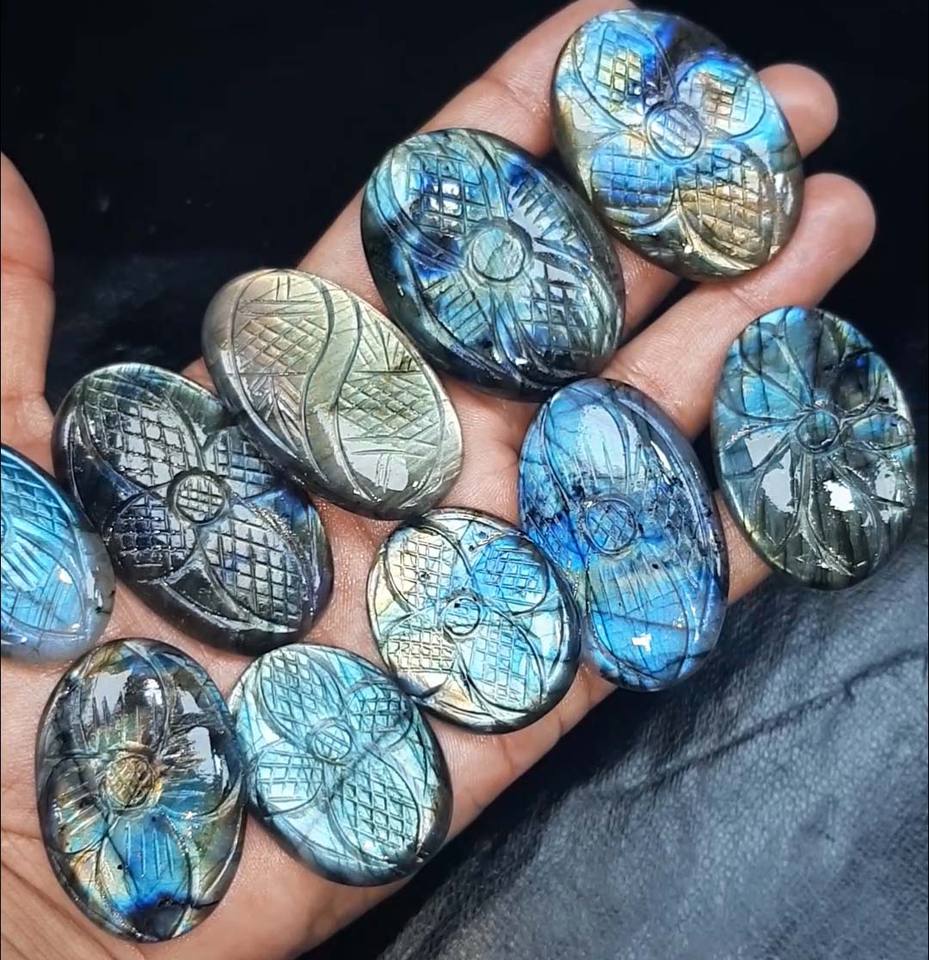 อัญมณีแกะสลักดอกไม้ลาบราดอไรต์ฉูดฉาดหลายแบบสำหรับทำเครื่องประดับอัญมณีสำหรับฤดูร้อน