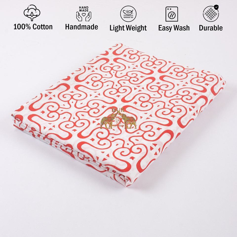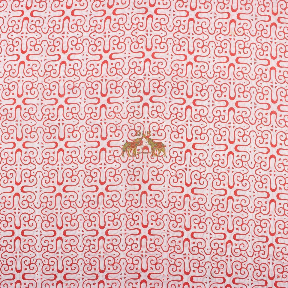ผ้าพิมพ์ลายดอกไม้สีแดงแบบแฮนด์บล็อก ผลิตจากผ้าฝ้าย 100% น้ำหนักเบา คุณภาพสูง เหมาะสำหรับตัดเย็บชุดผู้หญิงและเครื่องแต่งกาย