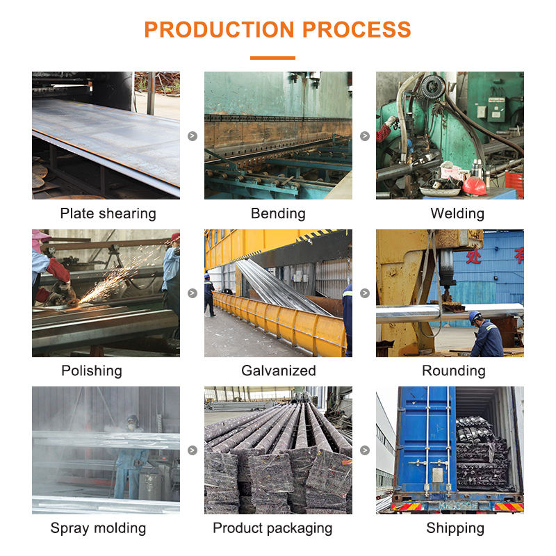 เสาไฟถนนโซลาร์เซลล์ LED แบบกลมทรงกรวย ขนาด 3 ม. 5 ม. 6 ม. 8 ม. 10 ม. 12 ม. ผลิตจากเหล็กชุบสังกะสี สำหรับภายนอกอาคาร ออกแบบโดยผู้ผลิตโดยไม่คิดค่าบริการออกแบบ