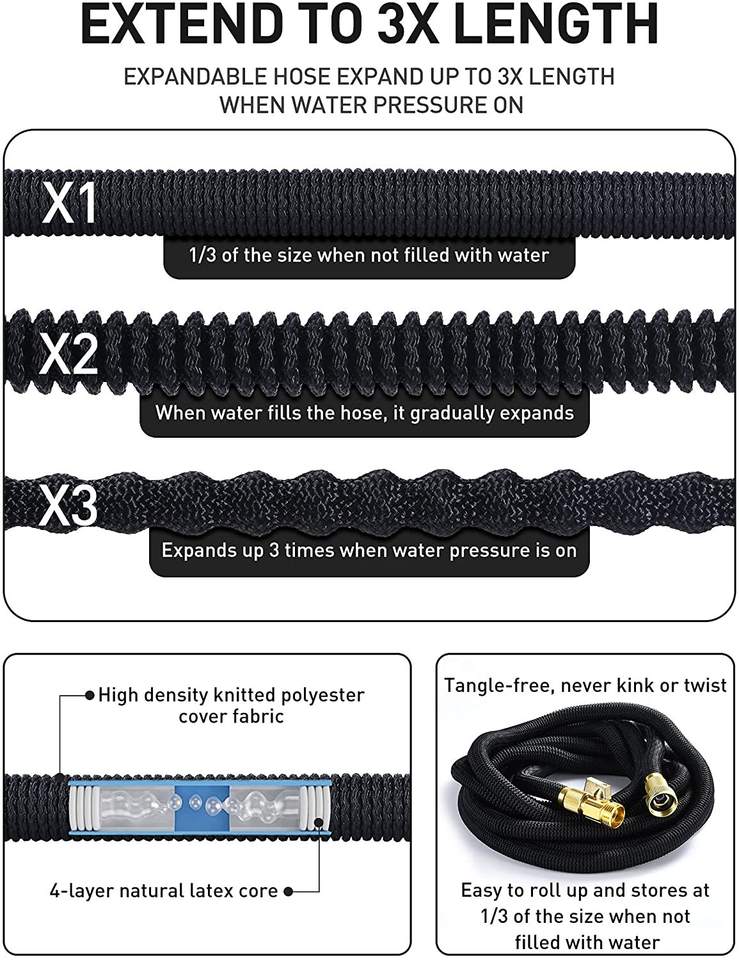 ผู้ผลิตคุณภาพดีรีลท่อสวนแบบยืดหดได้ 100ft Magic ขยายสวนรดน้ําชุดท่อสวน