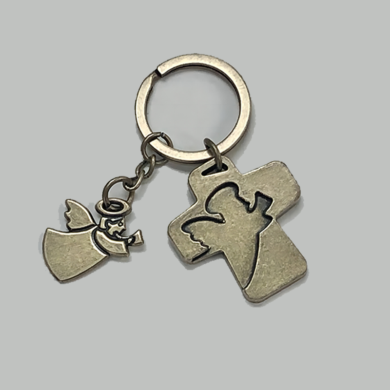 Manufacturer Good Quality Small Zinc Alloy Cross Angel Pattern Keyring Metal Crafts Keyholder for Gifts
