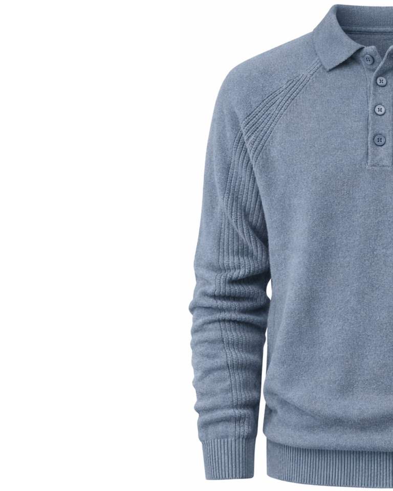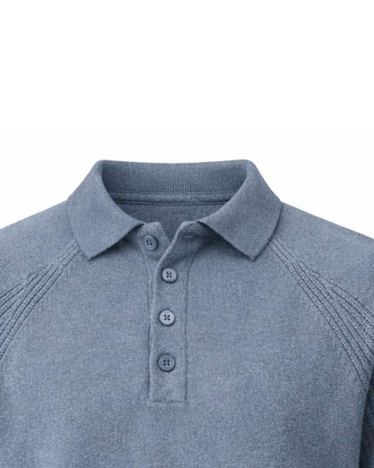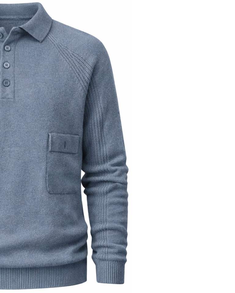 เสื้อโปโลไหมพรมขนสัตว์ผู้ชายสีเทา ผลิตโดยผู้ผลิต เสื้อกันหนาวแขนยาวแบบสวม ปิดด้วยกระดุม สไตล์ลำลอง อุ่นสบาย ผ้าถักเนื้อหนา