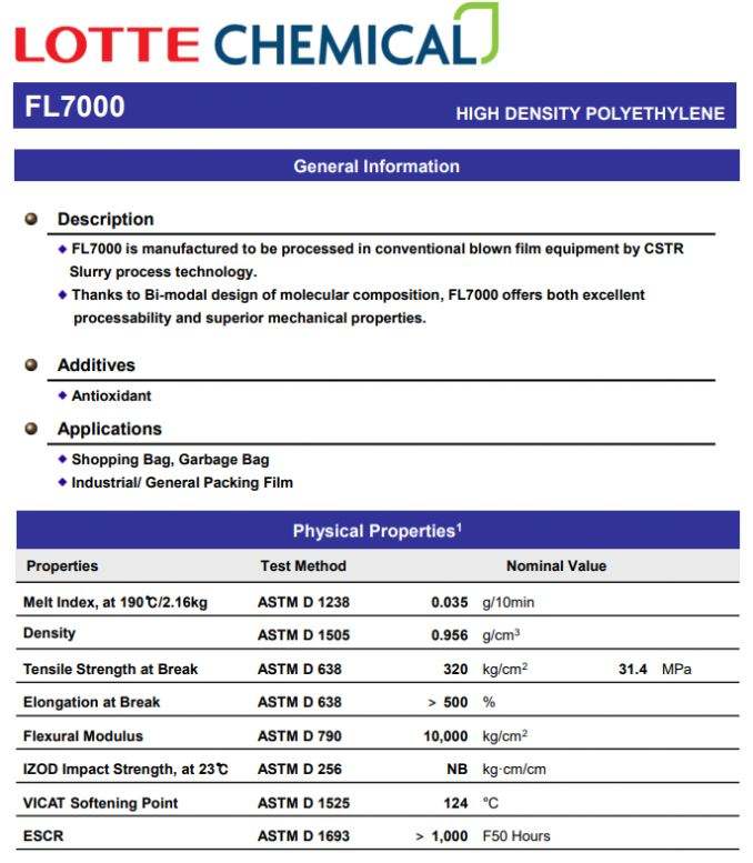 หมายเลขรุ่น:HDPE FL7000