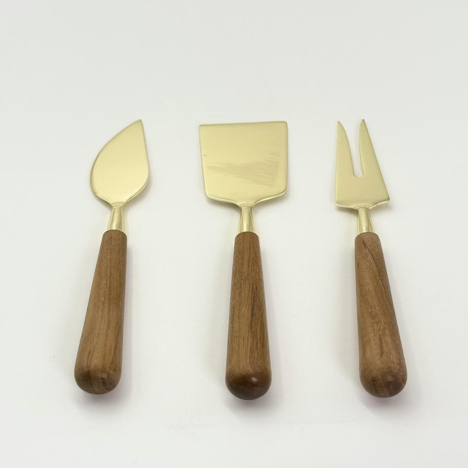 ชุดมีดชีสสแตนเลสสตีลทำมือจากผู้ผลิต พร้อมด้ามไม้เคลือบทอง ใช้สำหรับโต๊ะอาหารเช้า
